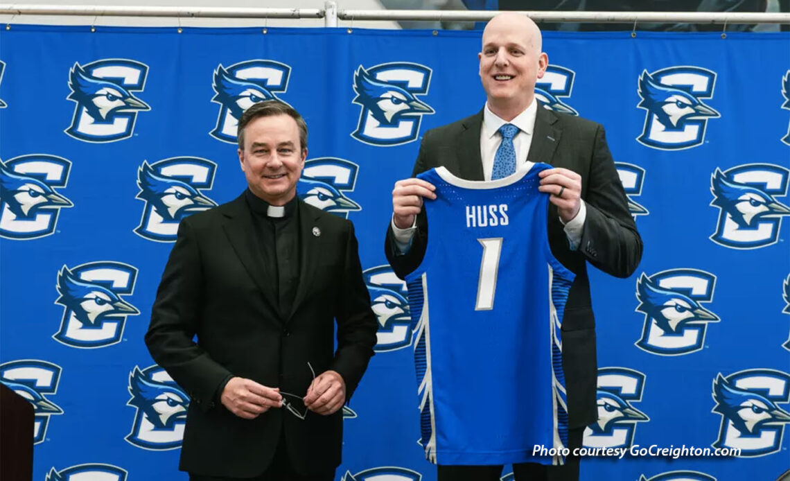 “I know he’s been here for a year, but I want to welcome the entire Huss family back to Creighton,” athletic director Marcus Blossom said, before joking that Huss had carried the Jays to multiple NCAA Tournaments during his time as a player.